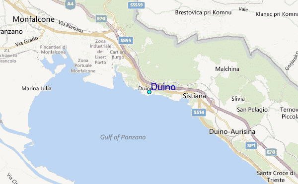 Use this relief map to navigate to tide stations, surf breaks and cities that are in the area of Duino.