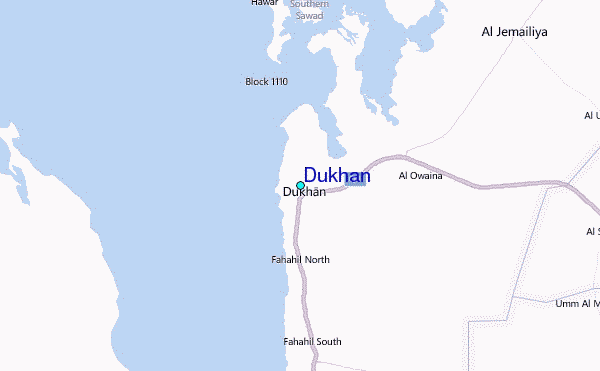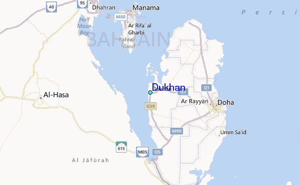 Use this relief map to navigate to tide stations, surf breaks and cities that are in the area of Dukhan.