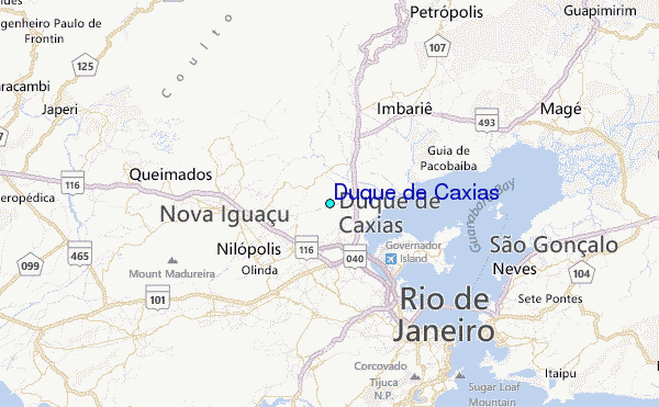 Use this relief map to navigate to tide stations, surf breaks and cities that are in the area of Duque de Caxias.