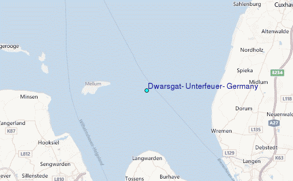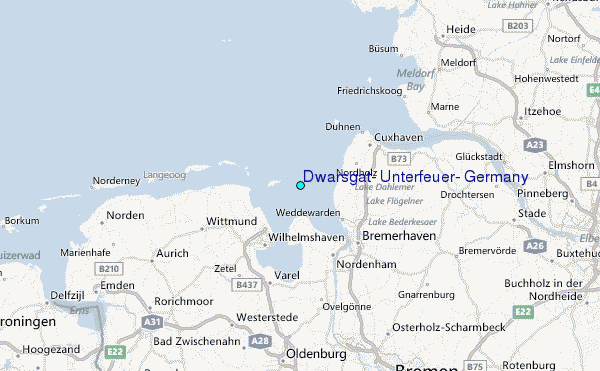 Use this relief map to navigate to tide stations, surf breaks and cities that are in the area of Dwarsgat, Unterfeuer, Germany.