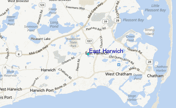Use this relief map to navigate to tide stations, surf breaks and cities that are in the area of East Harwich.