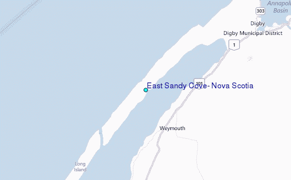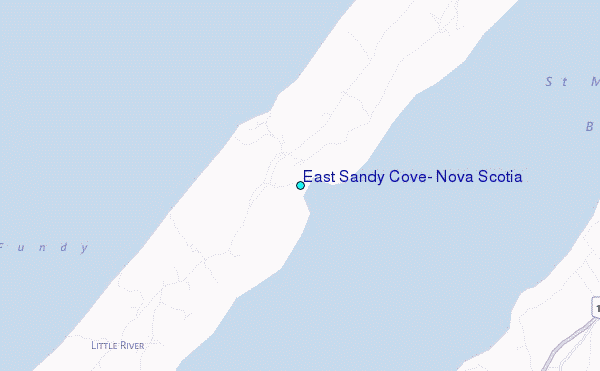 Use this relief map to navigate to tide stations, surf breaks and cities that are in the area of East Sandy Cove, Nova Scotia.