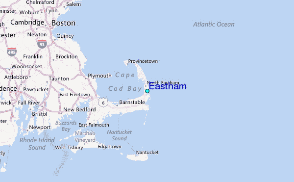 Use this relief map to navigate to tide stations, surf breaks and cities that are in the area of Eastham.