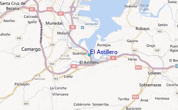 Use this relief map to navigate to tide stations, surf breaks and cities that are in the area of El Astillero.