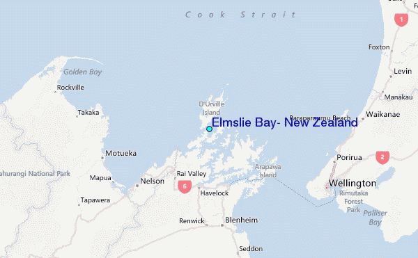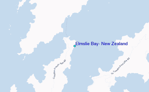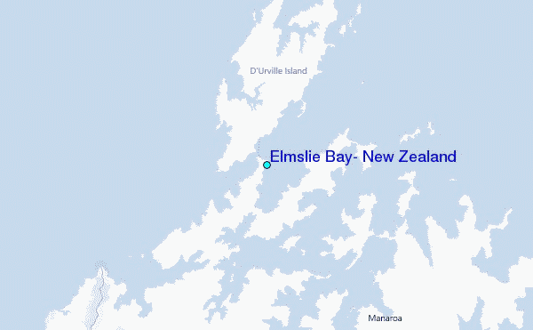 Use this relief map to navigate to tide stations, surf breaks and cities that are in the area of Elmslie Bay, New Zealand.
