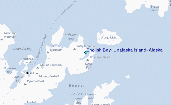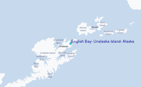 Use this relief map to navigate to tide stations, surf breaks and cities that are in the area of English Bay, Unalaska Island, Alaska.