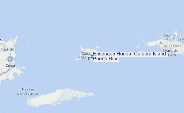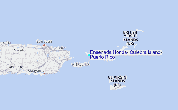 Use this relief map to navigate to tide stations, surf breaks and cities that are in the area of Ensenada Honda, Culebra Island, Puerto Rico.