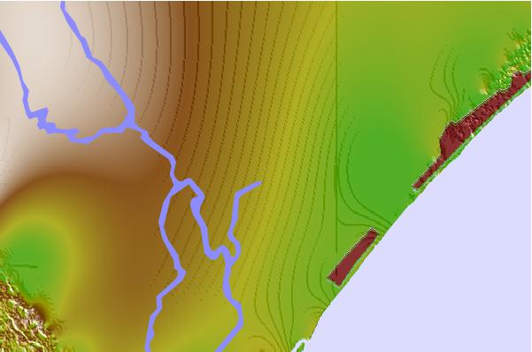 Use this relief map to navigate to tide stations, surf breaks and cities that are in the area of Enterprise Landing, Waccamaw River, South Carolina.