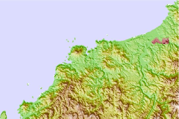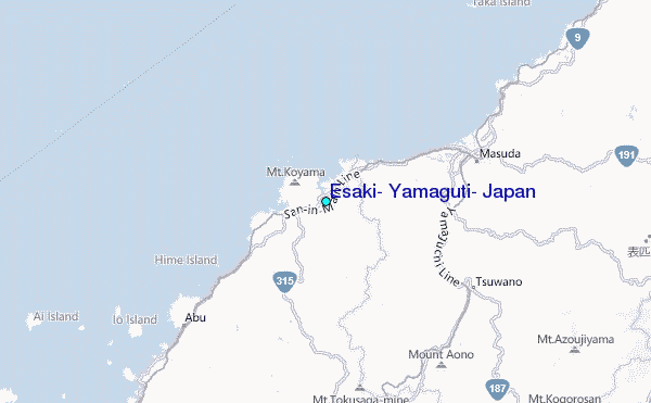 Use this relief map to navigate to tide stations, surf breaks and cities that are in the area of Esaki, Yamaguti, Japan.