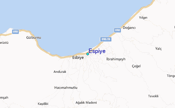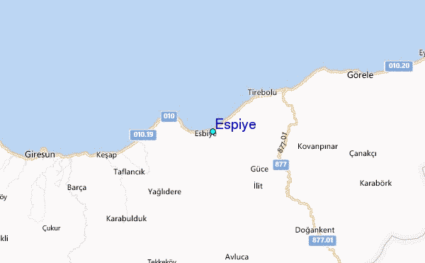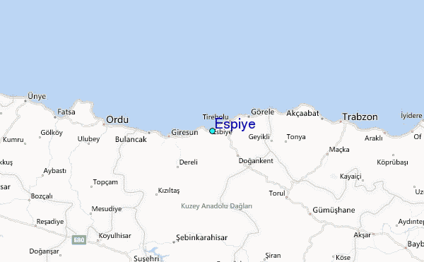 Use this relief map to navigate to tide stations, surf breaks and cities that are in the area of Espiye.