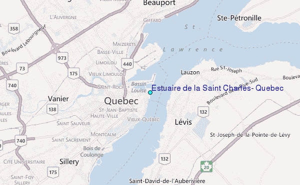 Use this relief map to navigate to tide stations, surf breaks and cities that are in the area of Estuaire de la Saint Charles, Quebec.