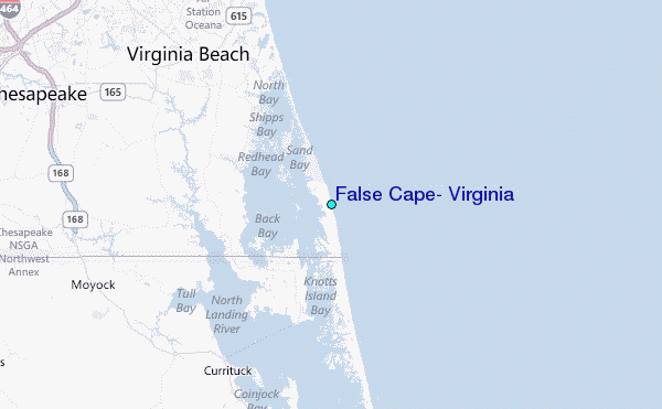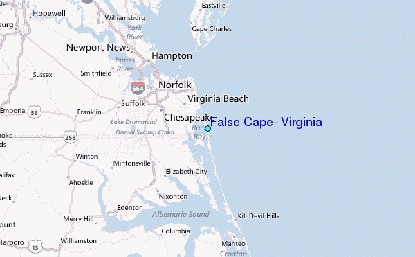 Use this relief map to navigate to tide stations, surf breaks and cities that are in the area of False Cape, Virginia.