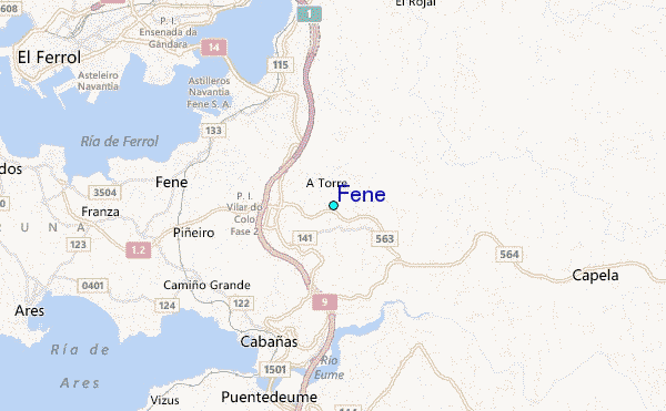 Use this relief map to navigate to tide stations, surf breaks and cities that are in the area of Fene.