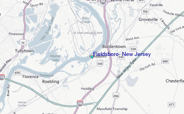 Use this relief map to navigate to tide stations, surf breaks and cities that are in the area of Fieldsboro, New Jersey.