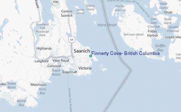 Use this relief map to navigate to tide stations, surf breaks and cities that are in the area of Finnerty Cove, British Columbia.