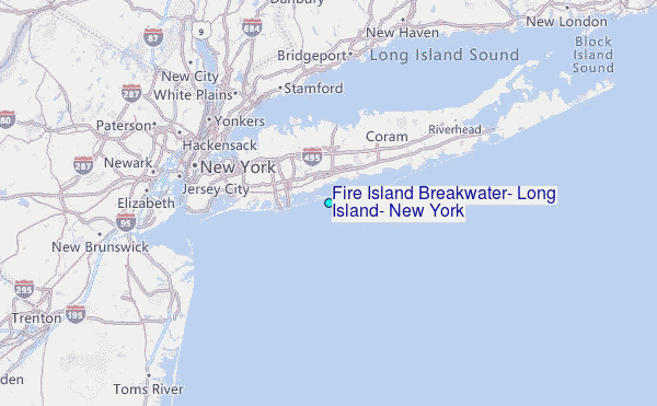 Use this relief map to navigate to tide stations, surf breaks and cities that are in the area of Fire Island Breakwater, Long Island, New York.