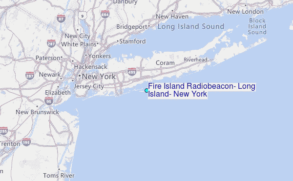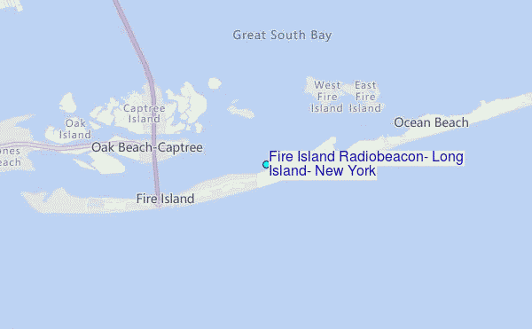 Use this relief map to navigate to tide stations, surf breaks and cities that are in the area of Fire Island Radiobeacon, Long Island, New York.