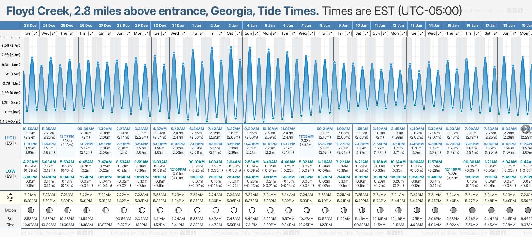 NOTE: Use of this site for Floyd Creek, 2.8 miles above entrance, Georgia tide times is subject to our terms.