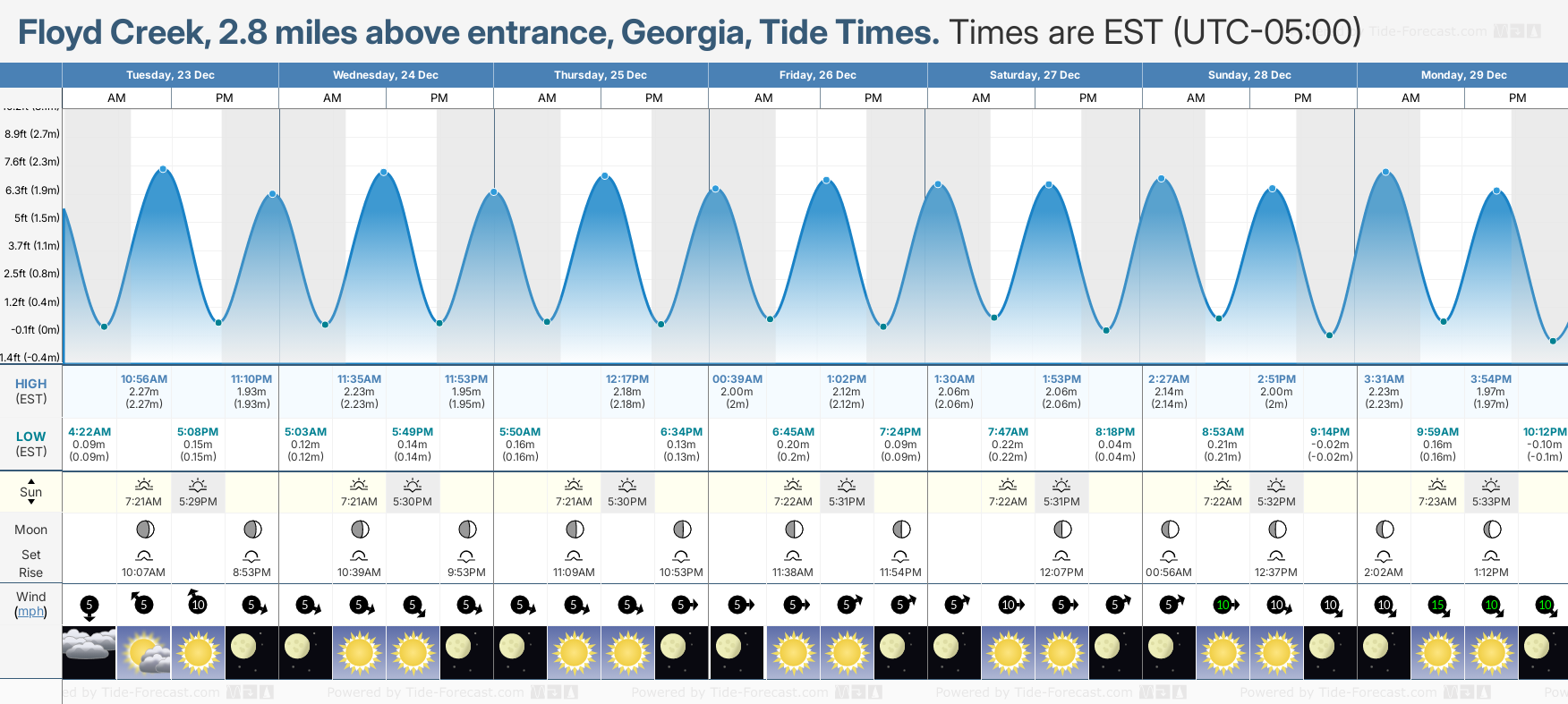 Today's tide times for Floyd Creek, 2.8 miles above entrance: Tuesday 23 December 2025