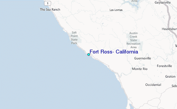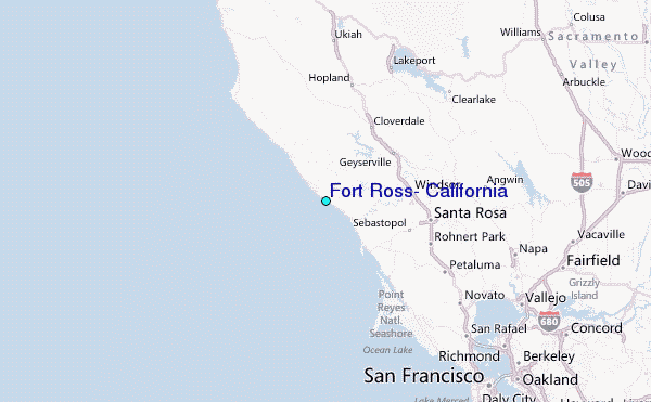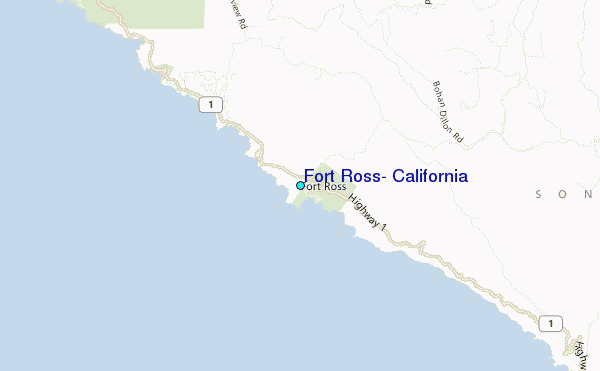 Use this relief map to navigate to tide stations, surf breaks and cities that are in the area of Fort Ross, California.