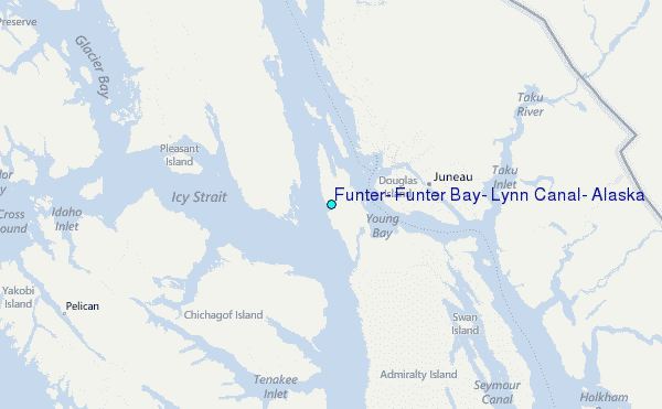 Use this relief map to navigate to tide stations, surf breaks and cities that are in the area of Funter, Funter Bay, Lynn Canal, Alaska.