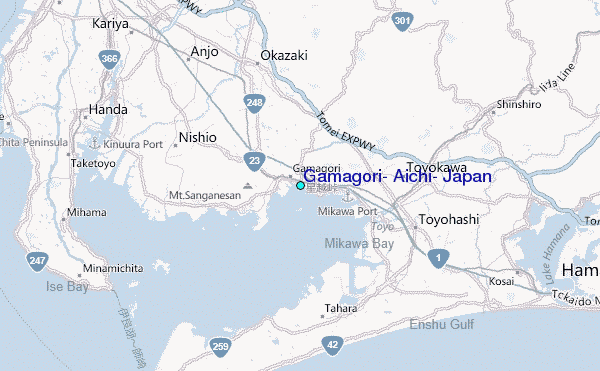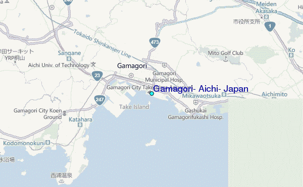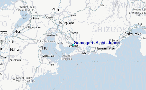 Use this relief map to navigate to tide stations, surf breaks and cities that are in the area of Gamagori, Aichi, Japan.