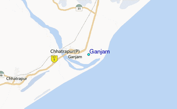 Use this relief map to navigate to tide stations, surf breaks and cities that are in the area of Ganjam.