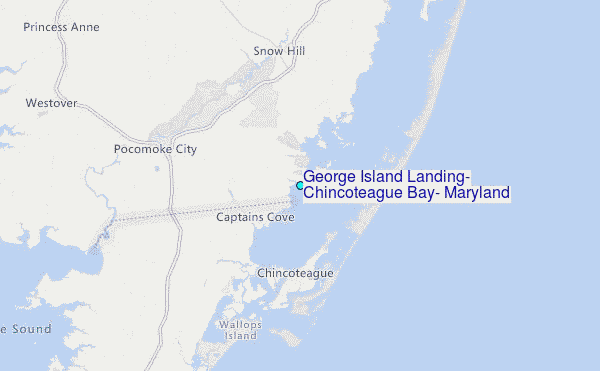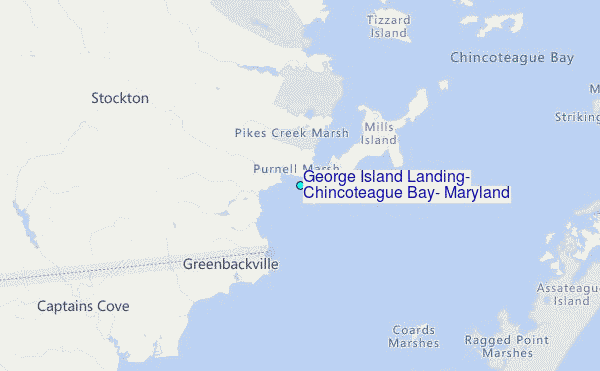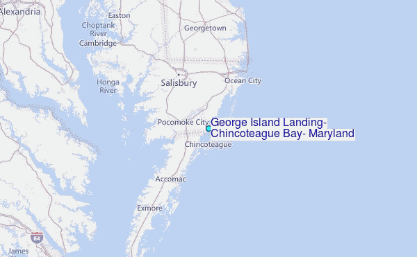 Use this relief map to navigate to tide stations, surf breaks and cities that are in the area of George Island Landing, Chincoteague Bay, Maryland.