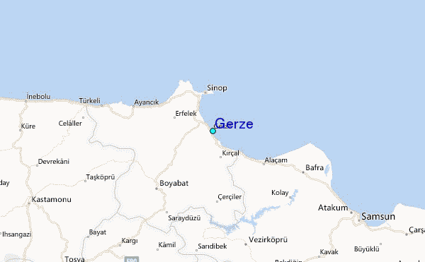 Use this relief map to navigate to tide stations, surf breaks and cities that are in the area of Gerze.