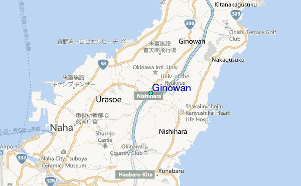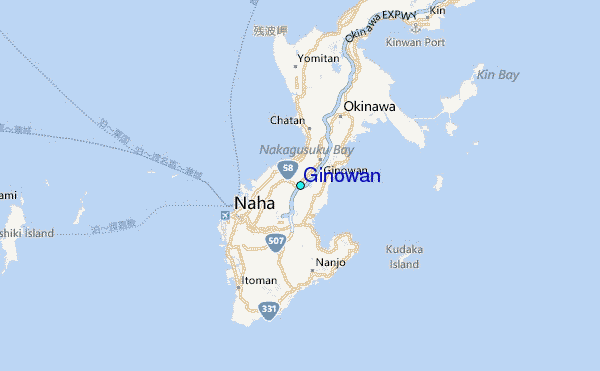 Use this relief map to navigate to tide stations, surf breaks and cities that are in the area of Ginowan.