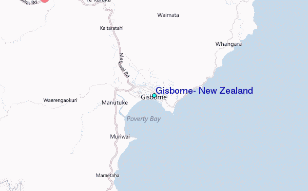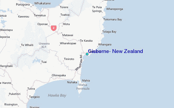 Use this relief map to navigate to tide stations, surf breaks and cities that are in the area of Gisborne, New Zealand.