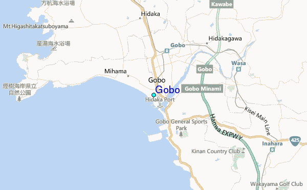 Use this relief map to navigate to tide stations, surf breaks and cities that are in the area of Gobo.