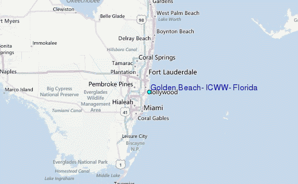 Use this relief map to navigate to tide stations, surf breaks and cities that are in the area of Golden Beach, ICWW, Florida.