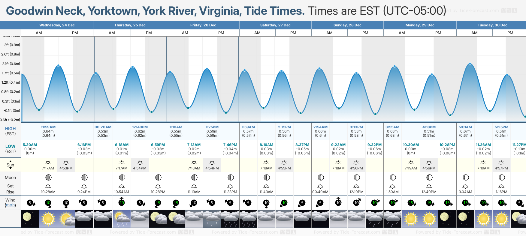 Tide Times for Goodwin Neck, Yorktown, York River (tomorrow): Thursday 25 December 2025