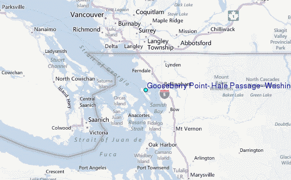 Use this relief map to navigate to tide stations, surf breaks and cities that are in the area of Gooseberry Point, Hale Passage, Washington.