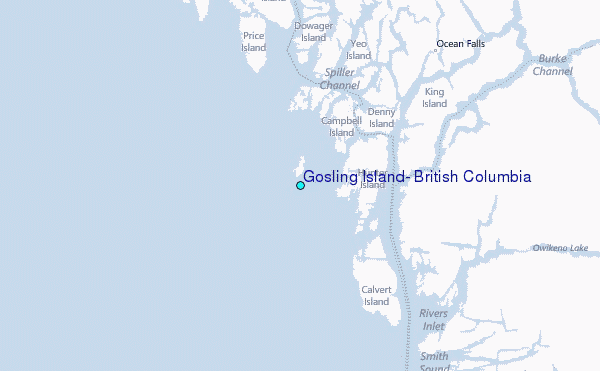 Use this relief map to navigate to tide stations, surf breaks and cities that are in the area of Gosling Island, British Columbia.