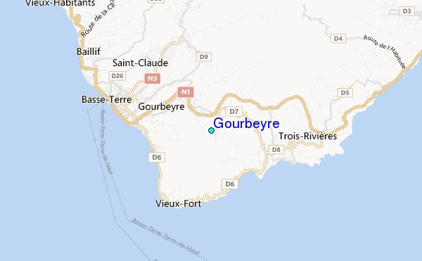 Use this relief map to navigate to tide stations, surf breaks and cities that are in the area of Gourbeyre.
