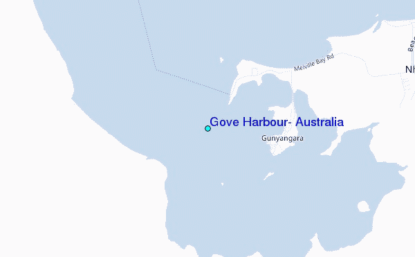 Use this relief map to navigate to tide stations, surf breaks and cities that are in the area of Gove Harbour, Australia.
