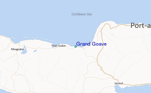Use this relief map to navigate to tide stations, surf breaks and cities that are in the area of Grand Goave.
