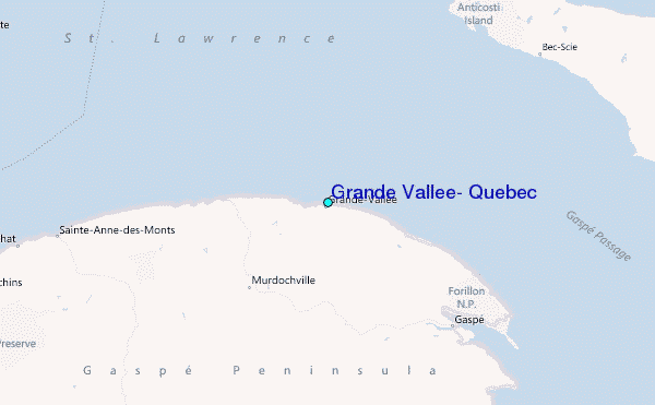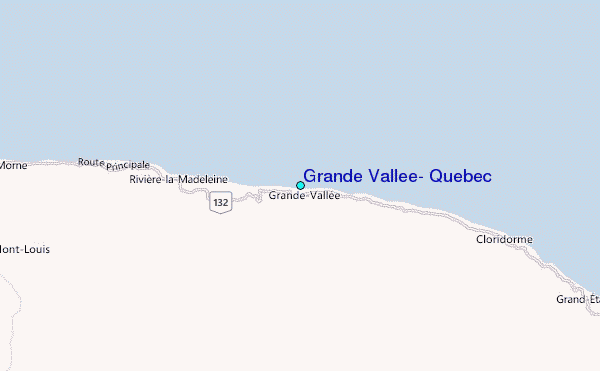 Use this relief map to navigate to tide stations, surf breaks and cities that are in the area of Grande Vallee, Quebec.