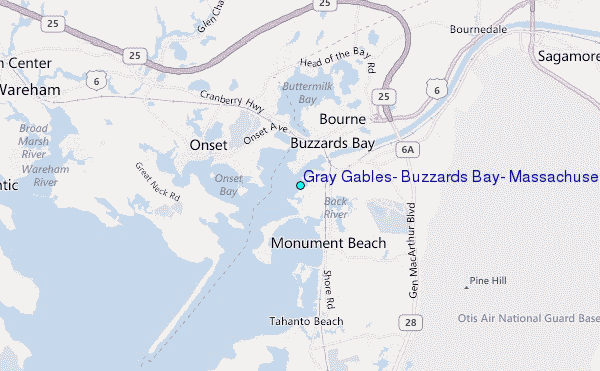 Use this relief map to navigate to tide stations, surf breaks and cities that are in the area of Gray Gables, Buzzards Bay, Massachusetts.