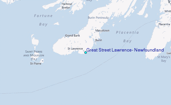 Use this relief map to navigate to tide stations, surf breaks and cities that are in the area of Great St Lawrence, Newfoundland.