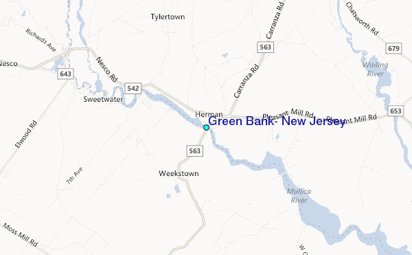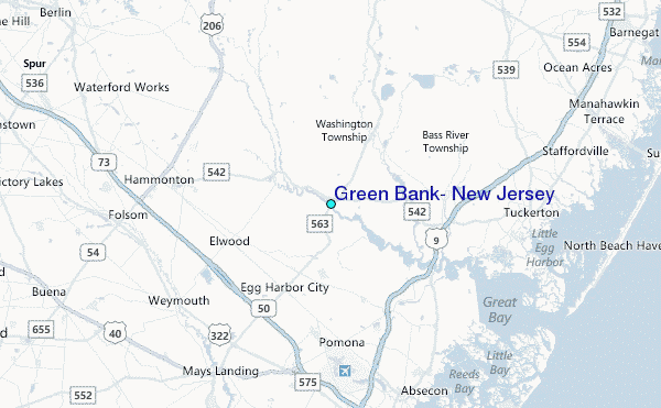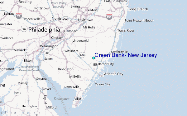 Use this relief map to navigate to tide stations, surf breaks and cities that are in the area of Green Bank, New Jersey.