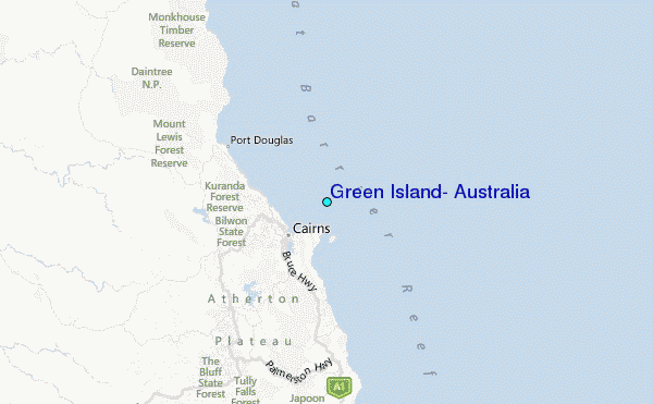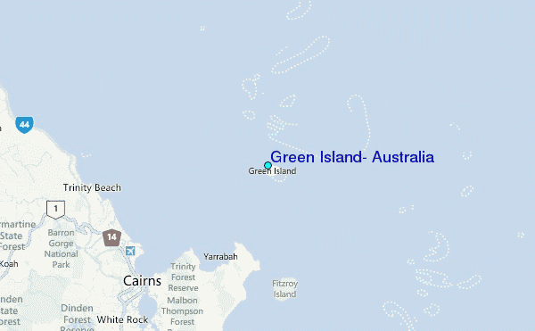 Use this relief map to navigate to tide stations, surf breaks and cities that are in the area of Green Island, Australia.