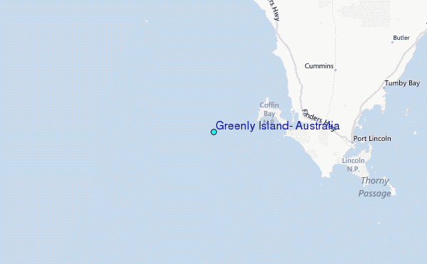 Use this relief map to navigate to tide stations, surf breaks and cities that are in the area of Greenly Island, Australia.