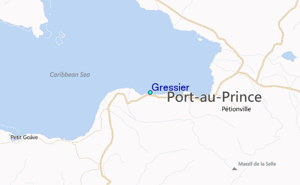 Use this relief map to navigate to tide stations, surf breaks and cities that are in the area of Gressier.