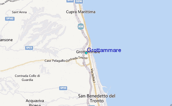 Use this relief map to navigate to tide stations, surf breaks and cities that are in the area of Grottammare.