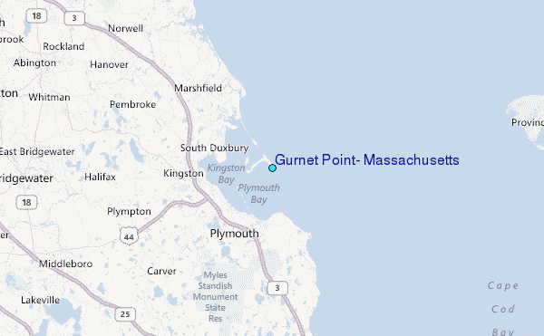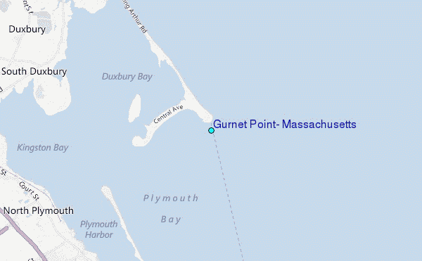 Use this relief map to navigate to tide stations, surf breaks and cities that are in the area of Gurnet Point, Massachusetts.