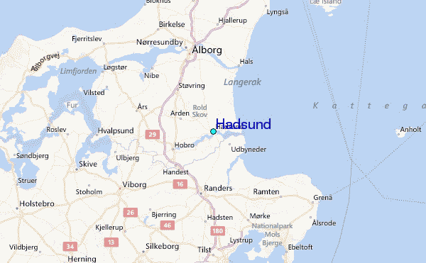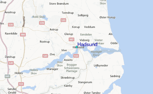 Use this relief map to navigate to tide stations, surf breaks and cities that are in the area of Hadsund.