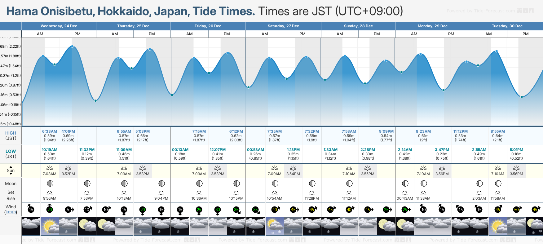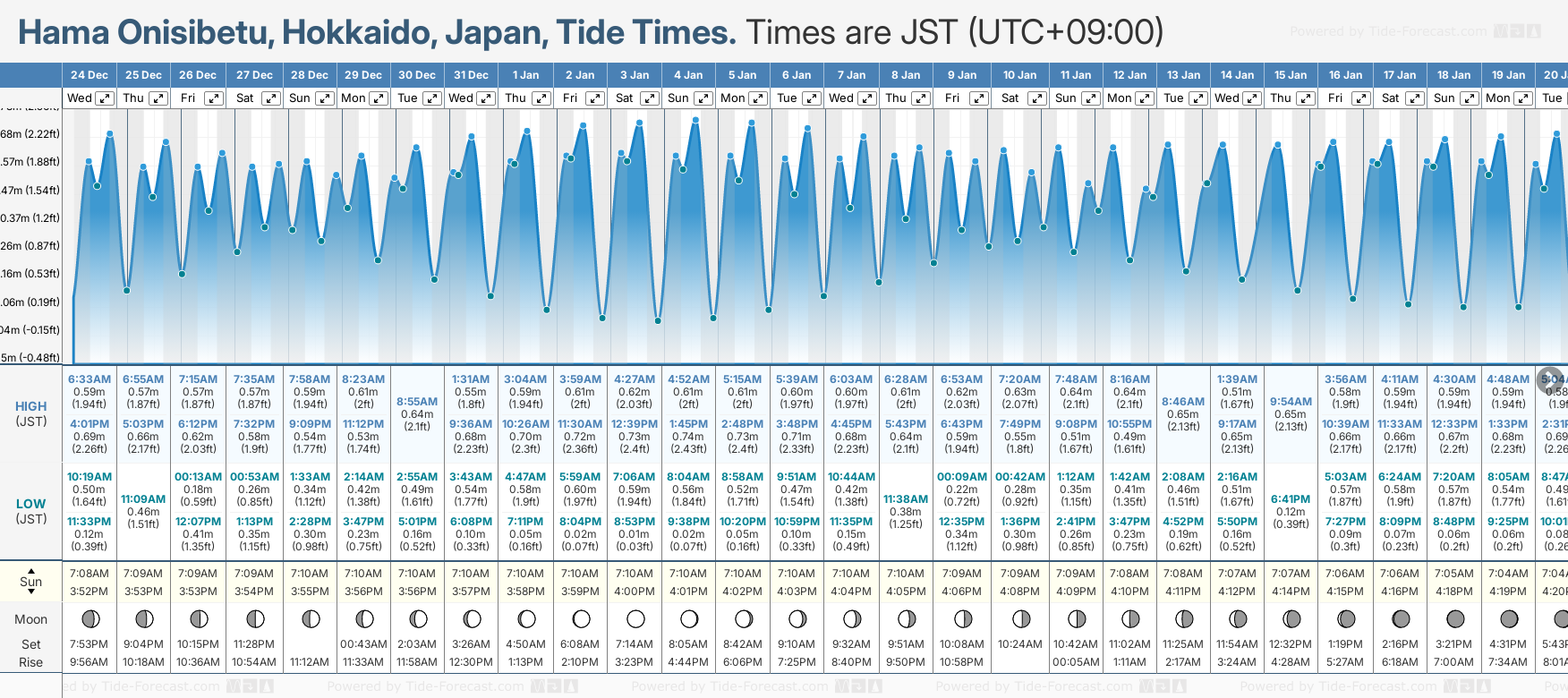Today's tide times for Hama Onisibetu, Hokkaido, Japan